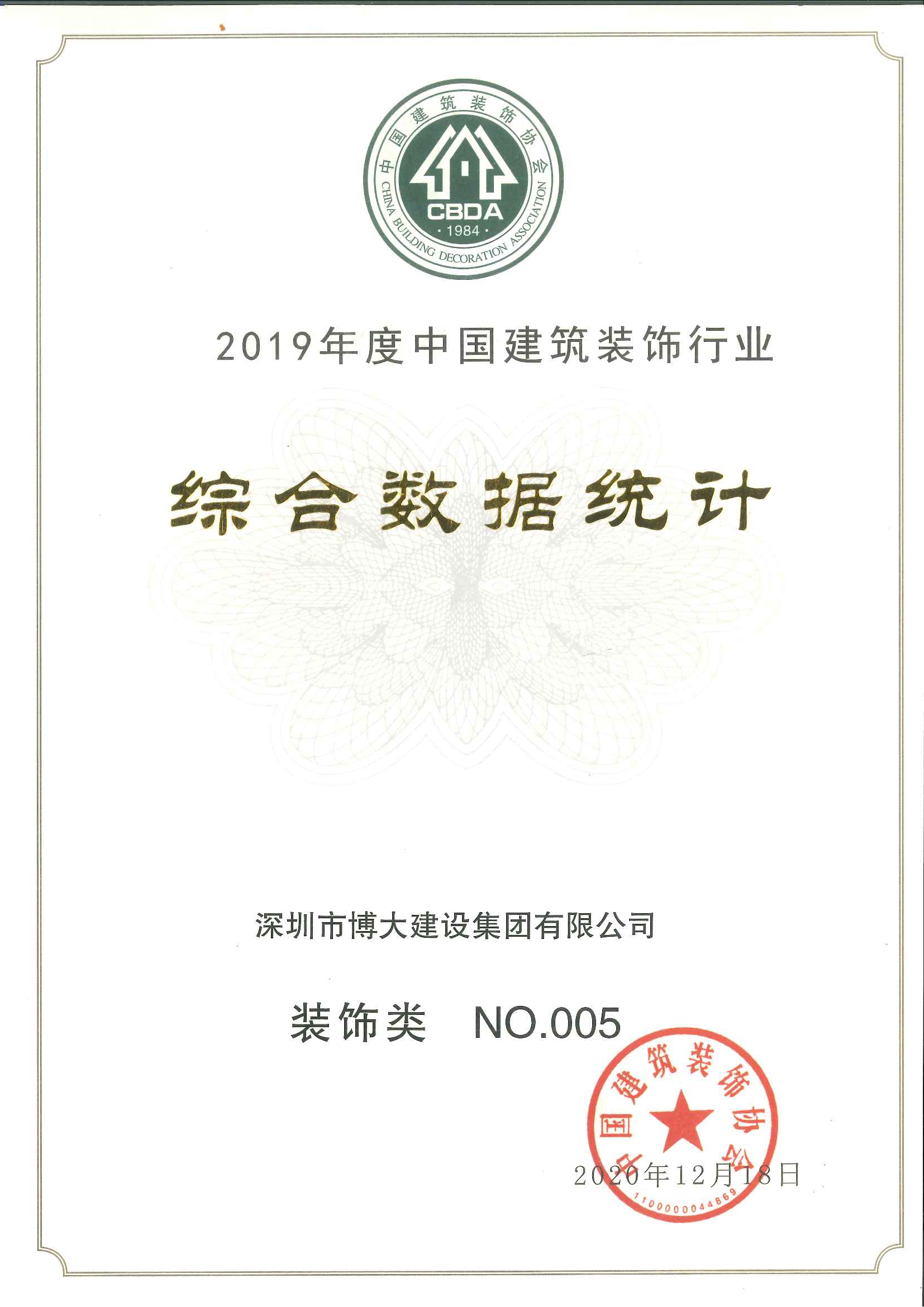 2019年行業全國排名裝飾類第五名