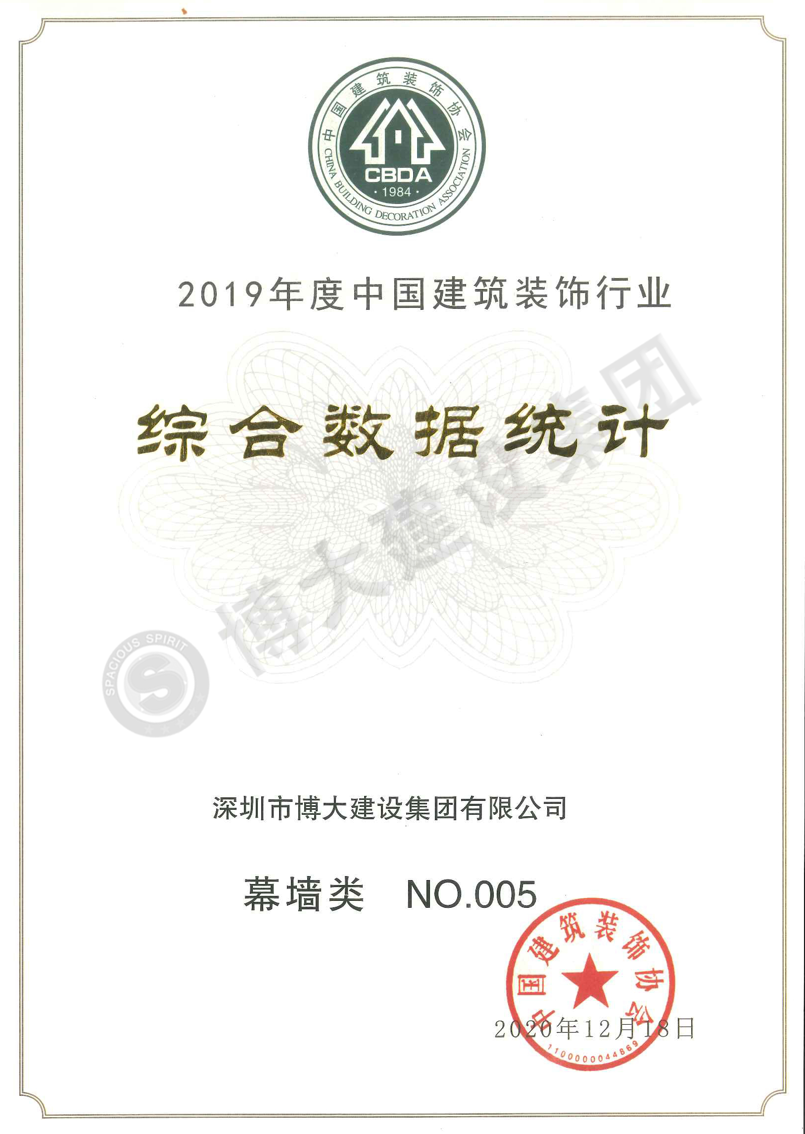 2019年行業全國排名幕墻類第五名