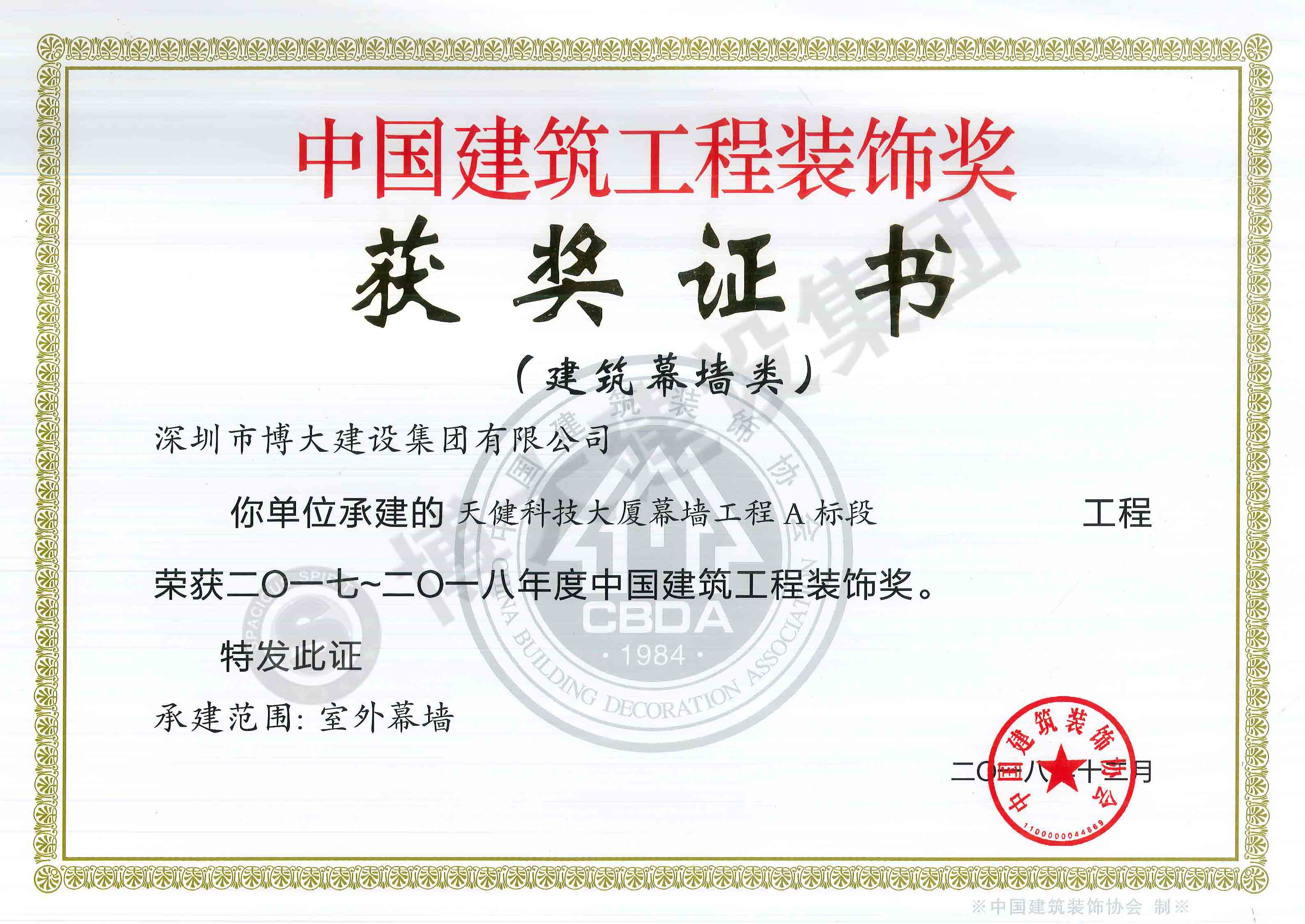 中國(guó)建筑工程裝飾獎(jiǎng)(天健科技大廈-幕墻)