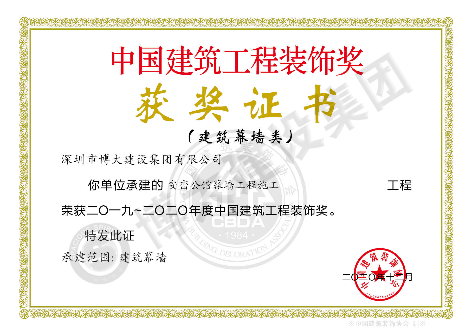 中國(guó)建筑工程裝飾獎(jiǎng)(安巒公館幕墻施工)
