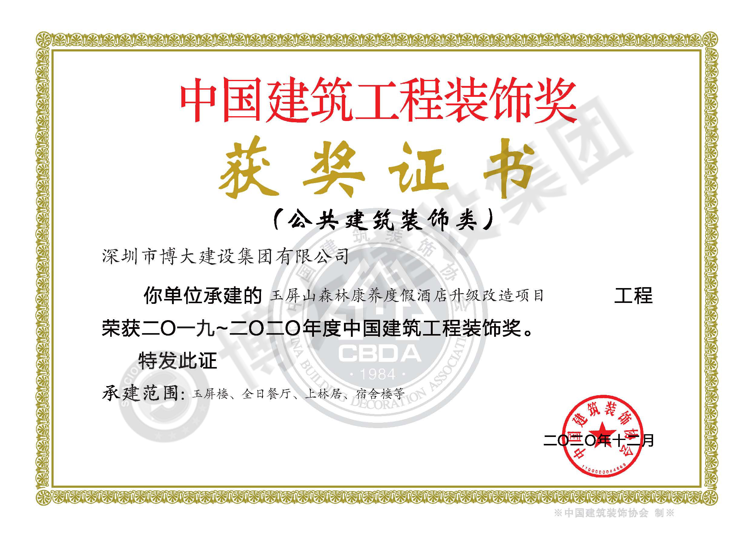 中國(guó)建筑工程裝飾獎(jiǎng)(四川玉屏山康養(yǎng)度假酒店裝飾施工)