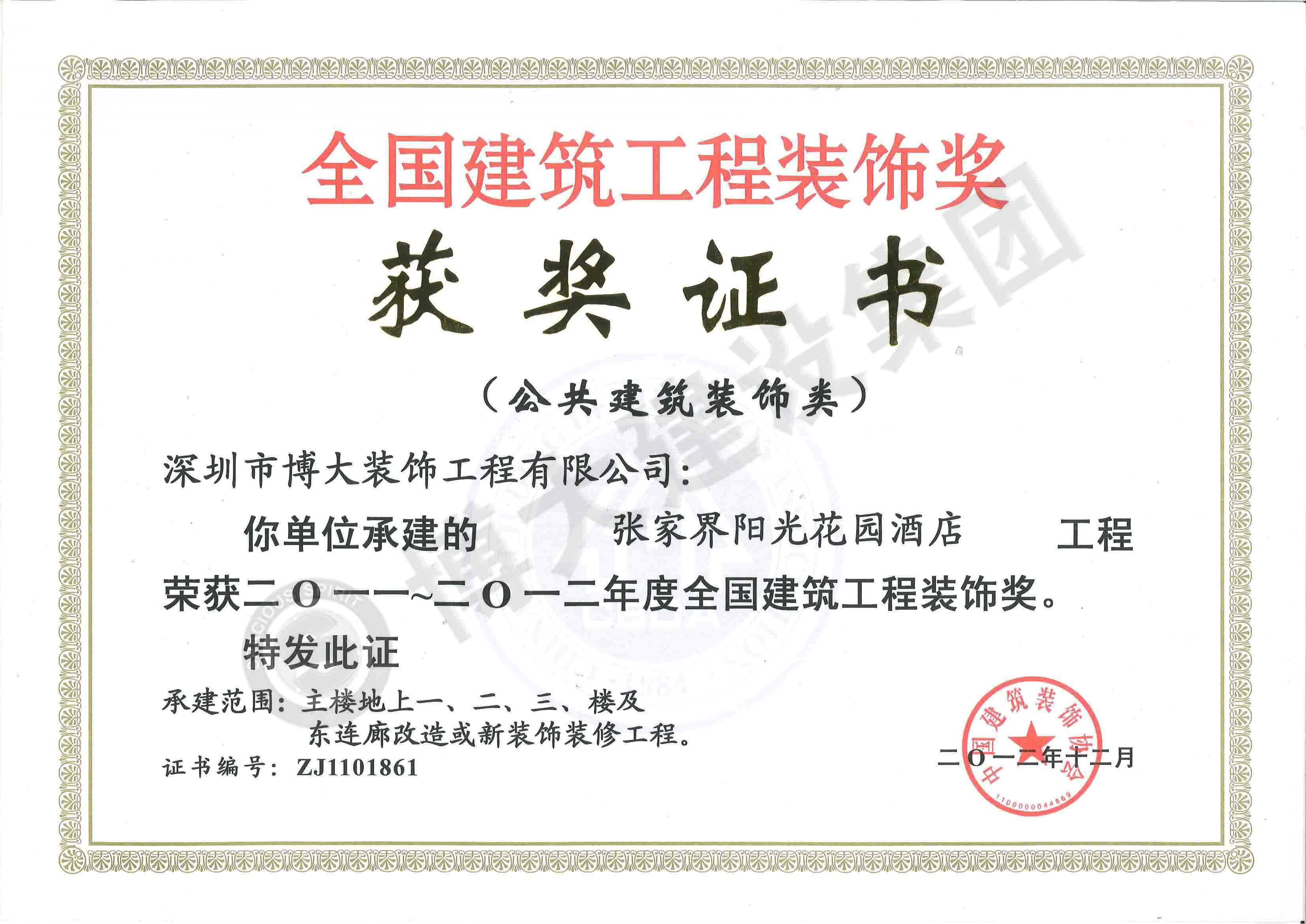 中國建筑工程裝飾獎(jiǎng)(張家界陽光花園酒店-裝飾)