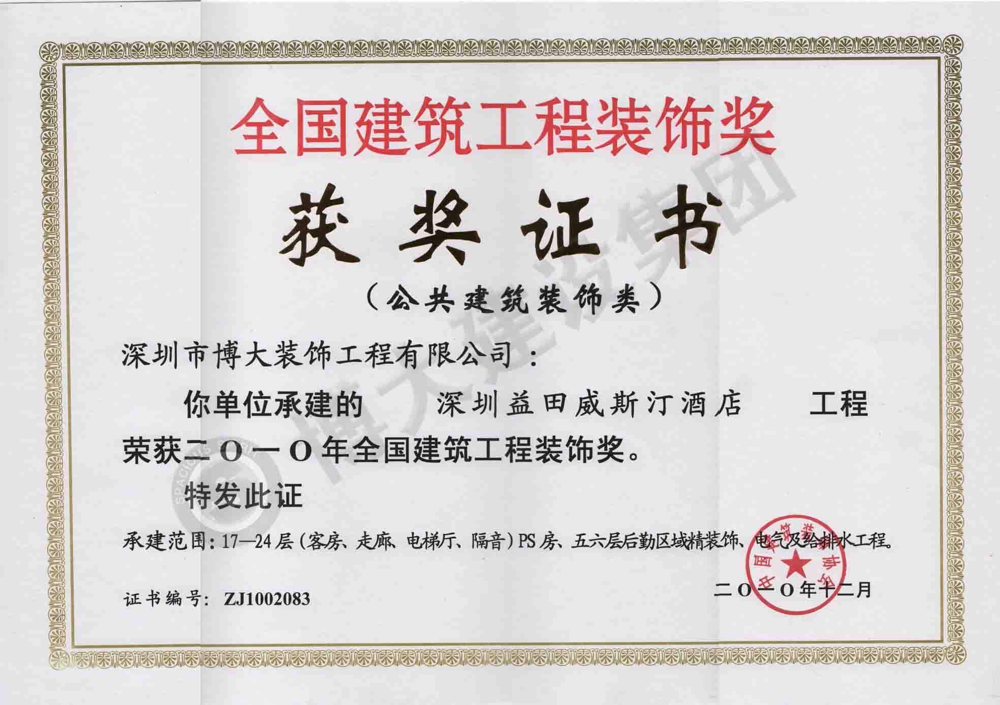 中國建筑工程裝飾獎(jiǎng)(深圳益田威斯汀酒店-裝飾)