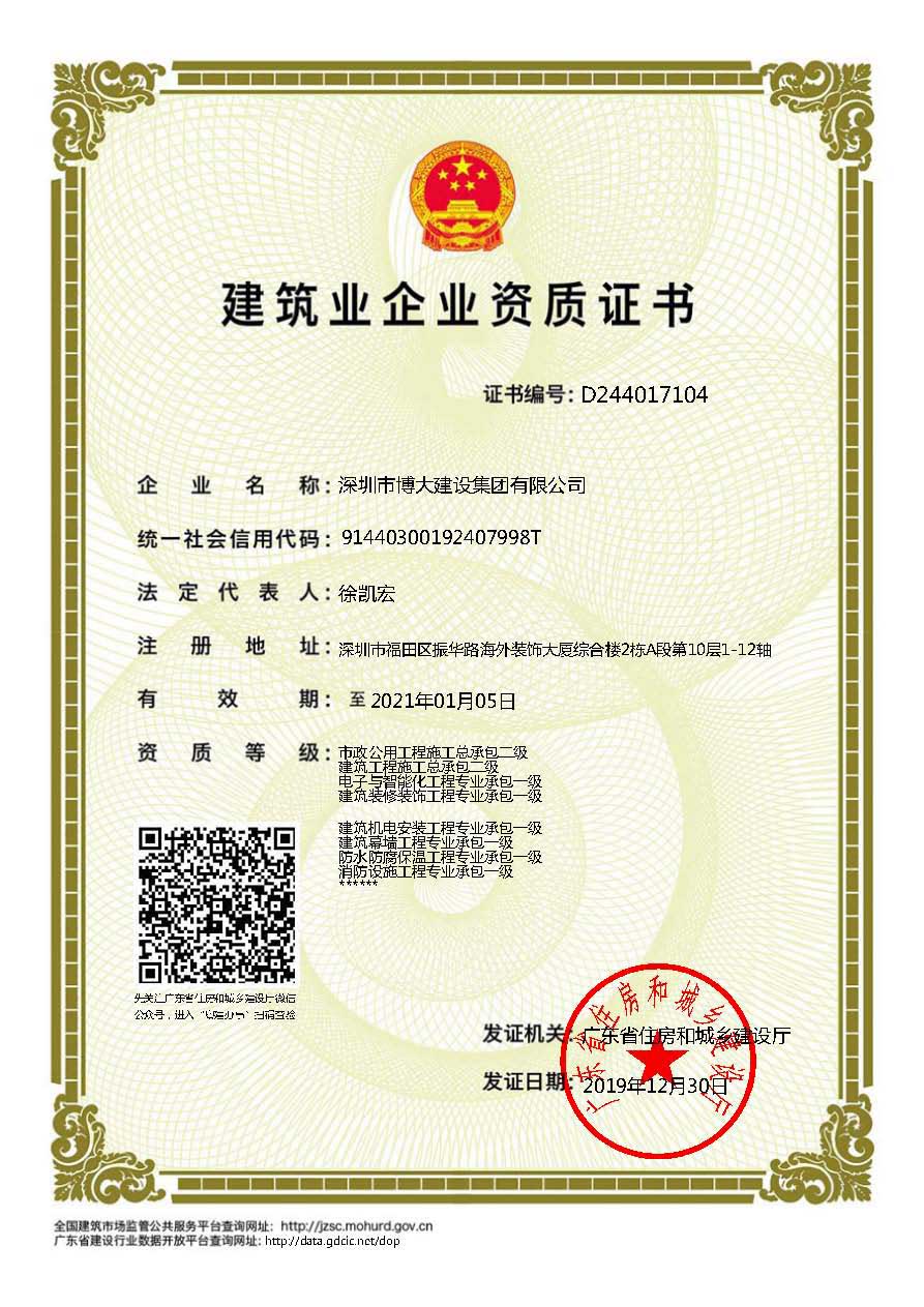 博大建設集團作為行業最具發展活力的領軍企業,近年來發展速度迅猛,2019年繼續保持穩步增長,業績過百億。在各級領導的關懷和全體家人的共同努力下,集團資質建設取得新的進展,榮獲6項建筑資質!