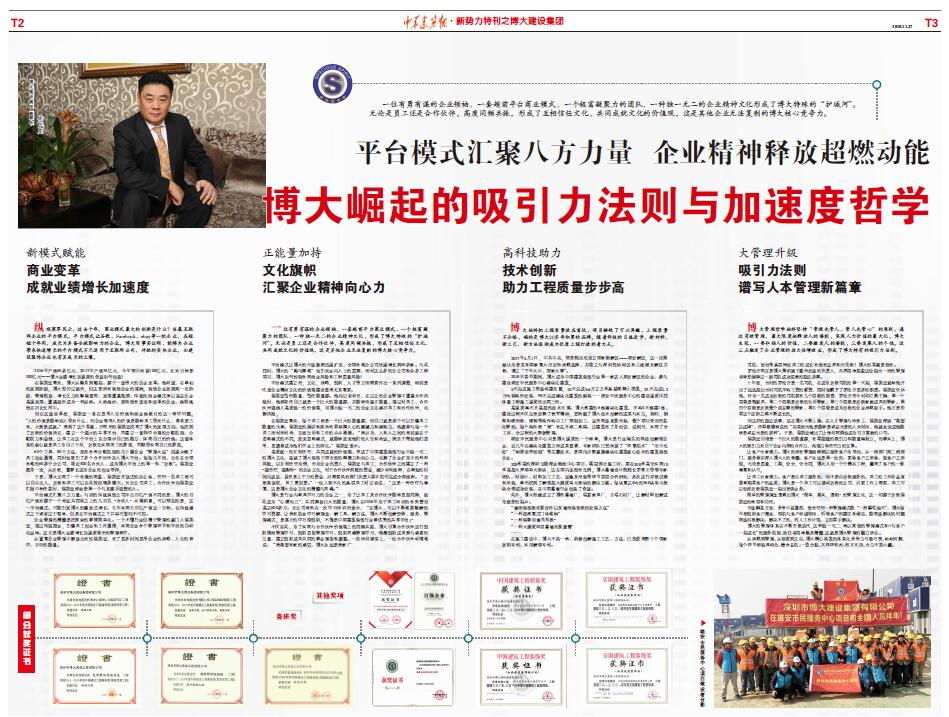 為更全面地介紹博大的發(fā)展經(jīng)驗,《中華建筑報》第2982期以特刊的形式,通過四個版面詳細講述“博大崛起的吸引力法則與加速度哲學(xué)”。全文摘錄如下,以饗讀者。