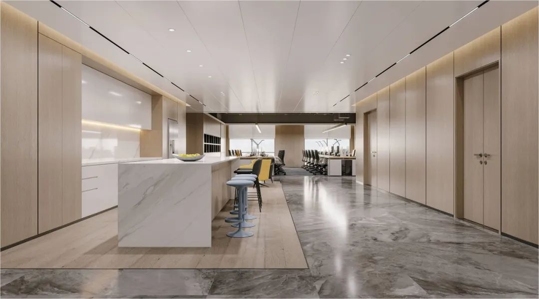 該辦公樓是集辦公,信息化,員工配套,培訓會議,企業展廳為一體的綜合性辦公樓,包含2棟建筑,總面積約4.8萬㎡。其中:1號樓地上建筑面積1.8萬㎡,2號樓地上建筑面積2.8萬㎡,博物館建筑面積2000㎡。博大的施工范圍涵蓋一層接待大堂;二三層信息化機房與系統運維;四五層職工餐廳;六至十二層科技辦公樓層;十三至十四層為企業特色辦公樓層;十五層培訓會議樓層;十六層文化活動中心,局部區域挑空作為羽毛球場地;十七層信合史館等在內的全部施工區域。
