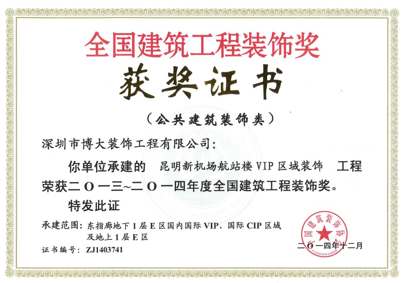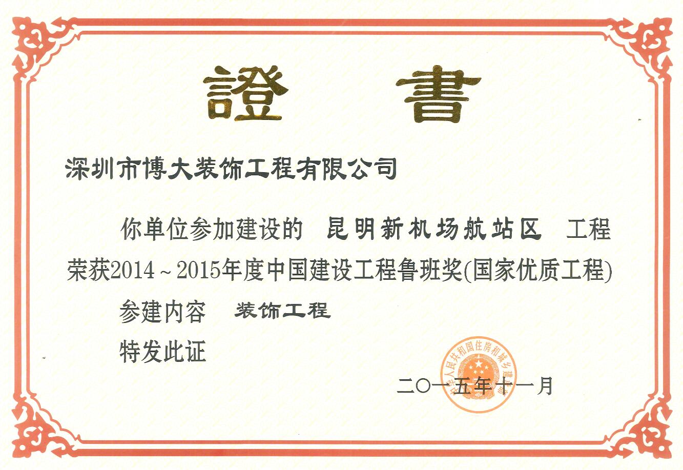 博大以精益求精的工匠精神成就大國(guó)品質(zhì),榮獲中國(guó)建筑裝飾最高獎(jiǎng)——魯班獎(jiǎng)、中國(guó)建筑裝飾工程獎(jiǎng),博大被云南省委、省政府授予“先進(jìn)集體嘉獎(jiǎng)”榮譽(yù)稱號(hào)。